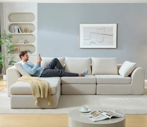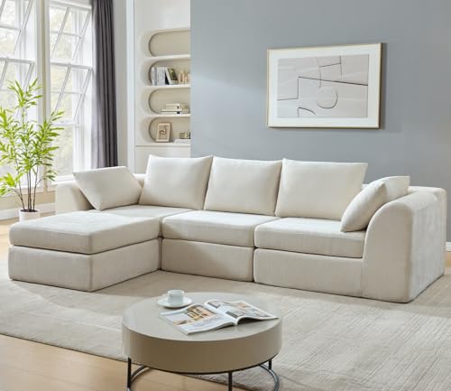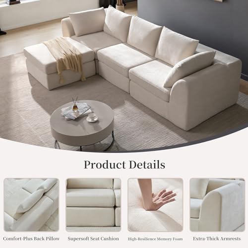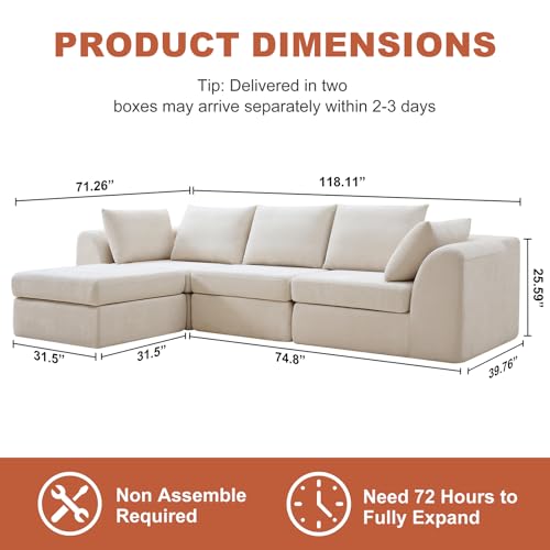Specification: 118″ Cloud Sofa for Living Room Sectional Couches, Modern L-Shaped Modular Sectional Sofa, Cloud Couchs Deep Seat Chenille & Boneless Couch-Oversized 3-Seater Couch and Movable Ottoman –Warm White