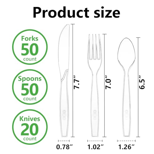 Specification: 120 Count Plastic Silverware Heavy Duty-50 Forks,50 Spoons,20 Knives,BPA-Free,Disposable Plastic Utensils Set,PlasticCutlery Set,Suitable for Party Everyday Use