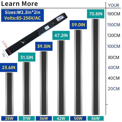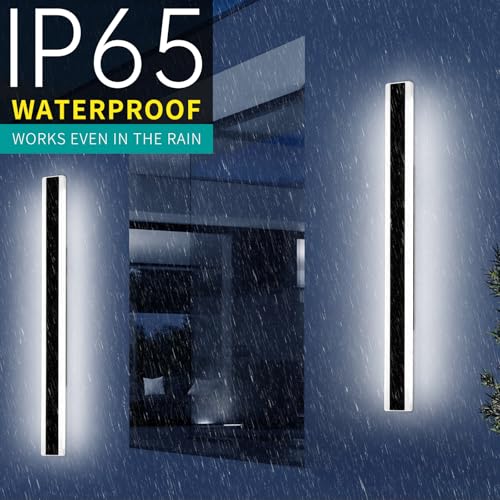 Specification: 2 Pack 57inch Exterior Wall Light Fixture, 6000K Cold White, Modern Long Outdoor Wall Sconce, IP65 Waterproof, 50W, Black Outside LED Strip Lighting for Garage, Patio, Balcony, Fence