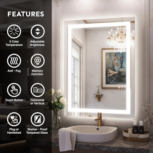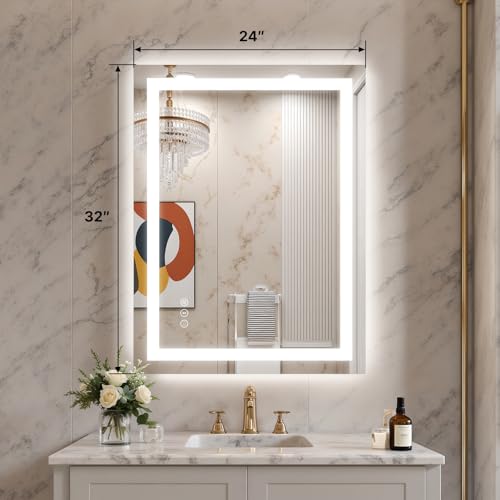 Specification: 24×32 LED Bathroom Mirror with Lights – Anti-Fog, Dimmable, Backlit & Front Lit Lighted Vanity Mirror for Wall – Smart Bathroom Mirror with Memory Function, Shatterproof Tempered Glass