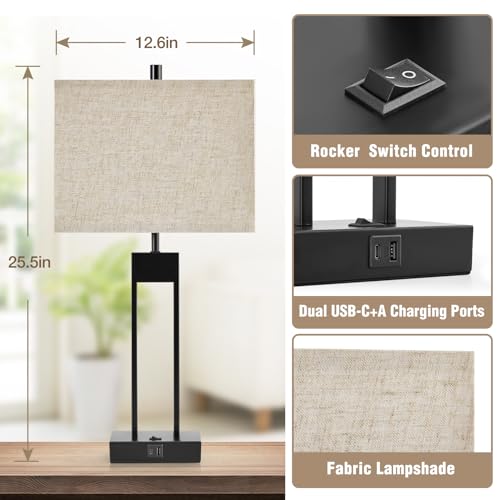 Specification: 25.5’’ Nightstand Table Lamps for Bedrooms Set of 2, Bedside Lamp with USB C+A, 3 Colors Changeable Living Room Lamps for End Tables, Modern Night Stand Lamps for Bed Side Guest Room Office Reading