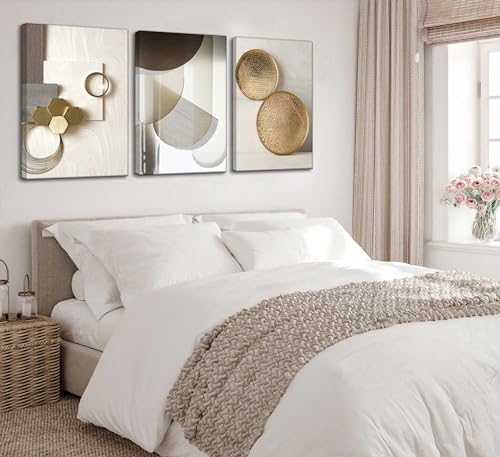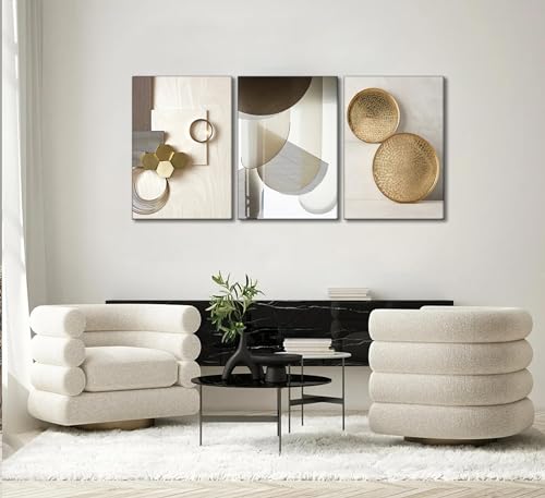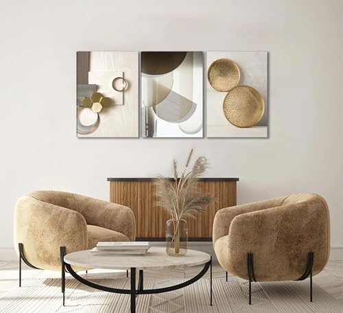 Specification: 3 Pcs Abstract Gold Geometric Boho Canvas Wall Art Mid Century Modern Minimalist Aesthetic Luxury Metal Artwork Pictures Wall Decor Posters Prints for Living room Bedroom Office Home Decoration