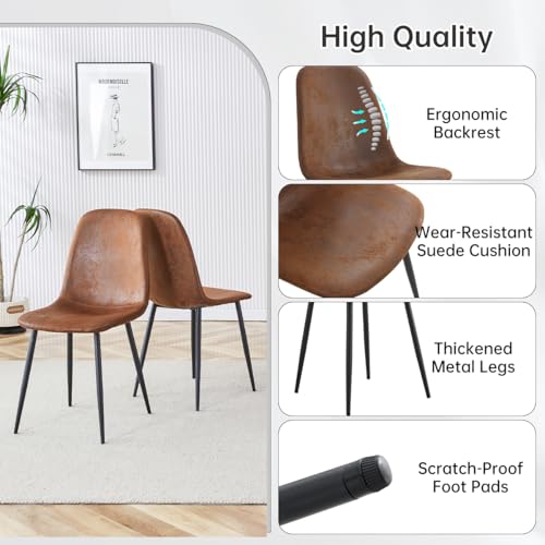 Durable Breakfast Table Set for 4 : Thickened MDF tabletop, stable metal base with non-slip pads. fabric chairs, ergonomic backs, high-resilience foam for comfort and long-term use