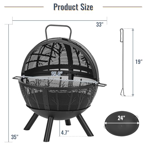 Specification: 35 Inch Wood Burning Fire Pit with BBQ Grill, Heavy Duty Fire Pits Ball for Outside with Spark Screen & Removable Ash Pan, Outdoor firepit & Fireplace for Bonfire in Garden, Yard