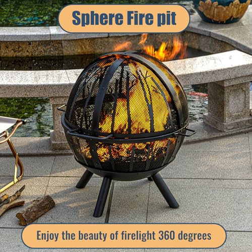 [Safe to Use] Panovue fire pit ball made from steel which will not be deformed. Four strong legs to ensure stability. The fire pit has a spark screen which can be opened or closed up and down, equipped with a sturdy handle, you can open screen to add firewood easily. Then close the screen can protect you from stray embers or debris and makes gathering safer. Features steel handles on each side for extra portability.