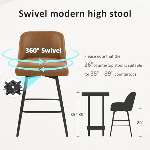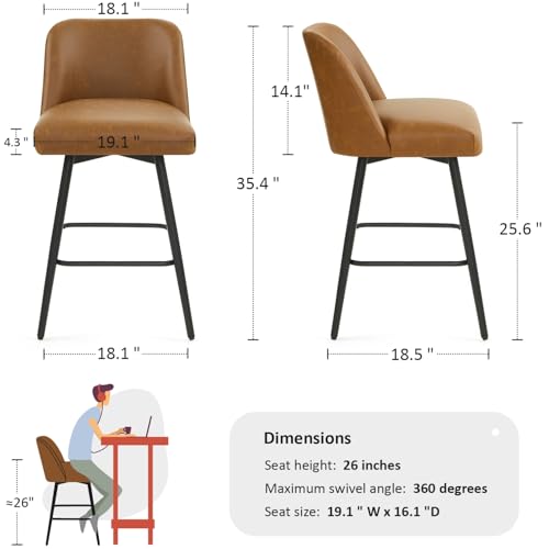 Specification: 360°Swivel Counter Height Bar Stools Set of 2,Upholstered Morden Kitchen Barstools with High Backs,26″ H Seat Height,Faux Leather (Faux Leather-Saddle Brown , 2 Pieces – 26″ Counter Height)