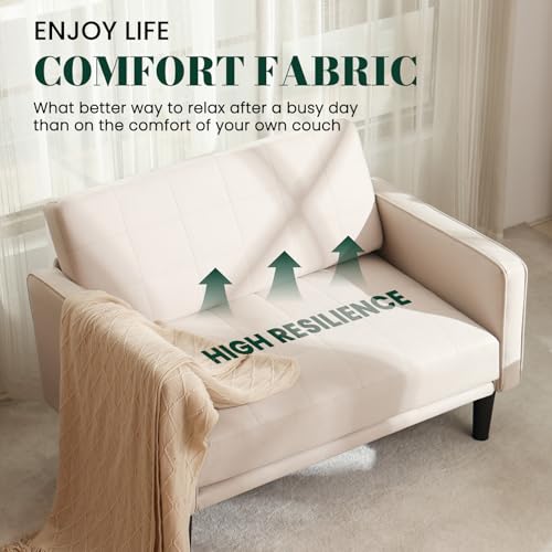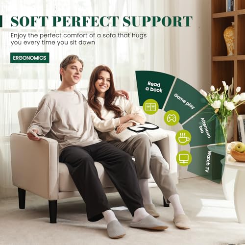 Specification: 45″ Beige Comfy Loveseat Sofa for Small Spaces, Small Sofa with Removable Washable Cover, High Density Foam Cushions, Solid Wood Frame, Ideal for Apartments, Easy to Assemble