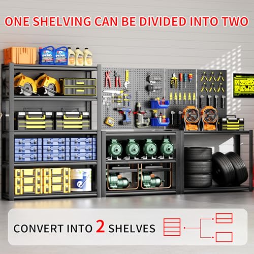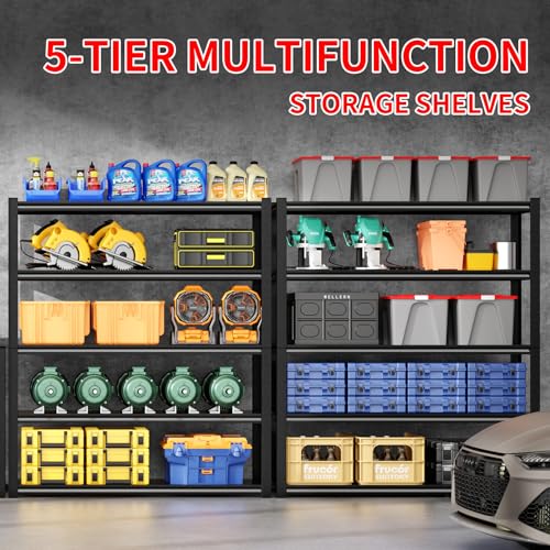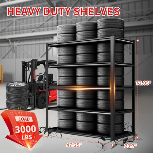 Specification: 47.2″ W x 23.7″ D Garage Shelving Heavy Duty Storage Racks 3000LBS Adjustable Metal Shelfs 5 Tier Shelving Units Garage Storage Shelves Industrial Utility Shelf 72″ H Tall Shelf for Storage