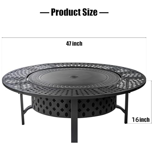 Specification: 47 Inch Fire Pit with 2 Grills, Wood Burning Fire Pits for Outside with Lid & Poker, BBQ& Outdoor Firepit & Round Metal Table 3 in 1 for Patio, Picnic, Party