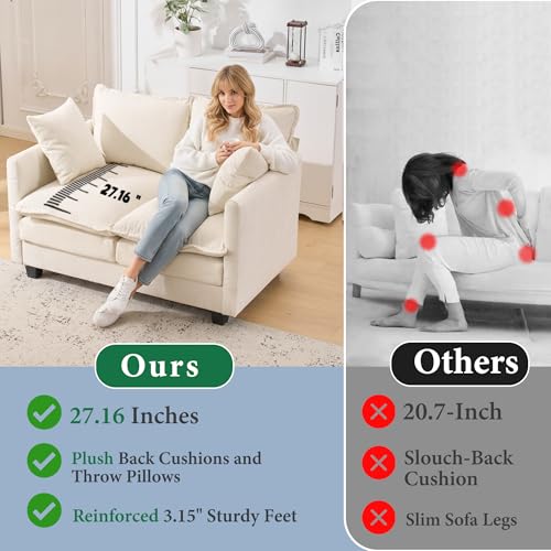 Specification: 50″ Loveseat Sofa Small Cloud Couch | Mini Chenille Love Seat Couches with 2 Pillows | 27.16″ Deep Seat for Small Spaces Bedroom Dorm Apartment | Beige