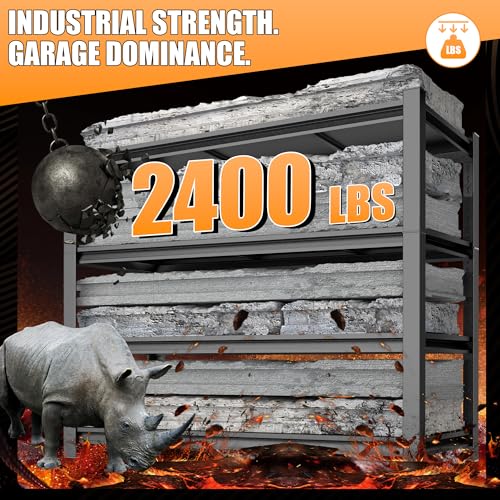 【Heavy-Duty Steel Construction】Built with durable, thickened cold-rolled steel, this garage shelving unit features reinforced uprights and cross beams for ultimate reliability. The scientific frame design of this metal shelving evenly distributes weight, supporting a massive 3500-lb capacity without bending. It’s the stronger, more dependable choice over common plastic or wooden storage shelves, perfect for all your garage storage needs.