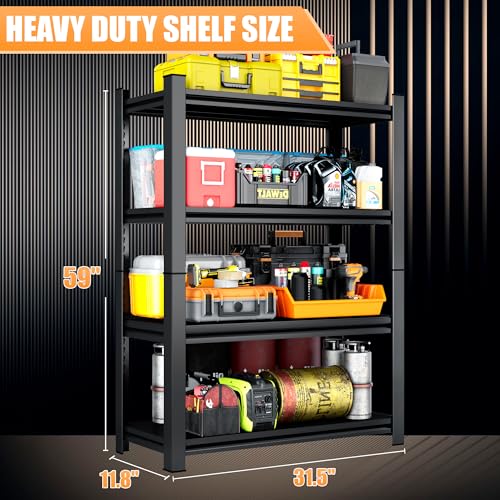 59″ H Garage Shelving 2400LBS Heavy Duty Storage Shelves Adjustable 4 Tier Metal Shelves for Storage Garage Industrial Shelving Utility Racks,11.8″ D x31.5 Wx59 H,Black