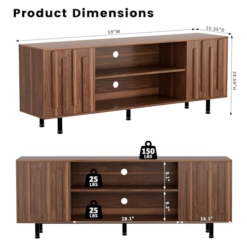Specification: 59″ TV Stand for 55 60 65 Inch TV, Entertainment Center with Storage Cabinet and Adjustable Shelves, Modern Mid-Century Wood TV Console Table for Living Room, Bedroom