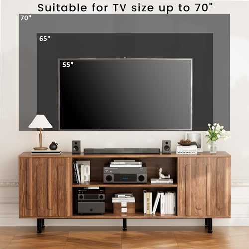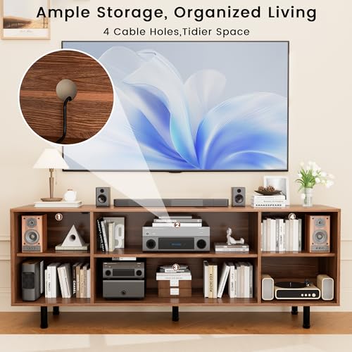 FLEXIBLE STORAGE SOLUTIONS: This TV stand features movable shelves to accommodate items of varying heights; 2 open spaces and 4 storage cabinets provide ample storage space; Use it as a TV stand in the living room, a console in the entryway, or a storage cabinet in the hallway—it’s versatile enough to meet all your daily needs