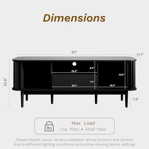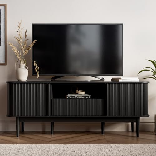 Brand new Design: Designed with smooth curved edges and clean lines, the black TV stand adds a Brand new and cozy feel for your living room. Featuring sliding doors and a fluted panel design to make a remark.