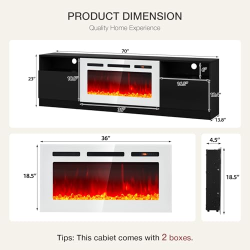 Specification: 70″ TV Stand with 36″ Electric Fireplace, Large Modern Media Entertainment Center with Storage Cabinet and 12 Colors LED Lights for TVs Up to 80″,Black & White