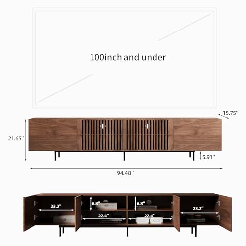 Specification: 94.48″ Mid Century Modern Walnut TV Stand with Grille Doors, Storage Cabinets,Entertainment Center for TVs Up to 80″,Media Console for Living Room or Bedroom