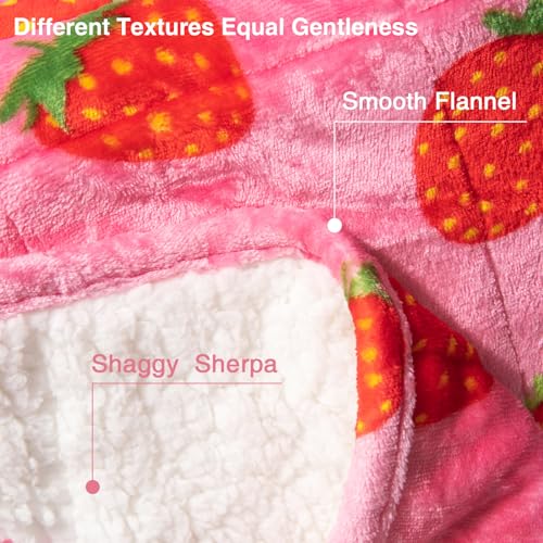 Aemicion Weighted Blanket Queen Size 15 Pounds 60″x80″,Soft Fluffy Fleece Sherpa Weighted Blankets for Adults,Cute Pink Strawberry Heavy Blanket Weighted as Gift Ideas for Women Teen Girls