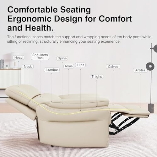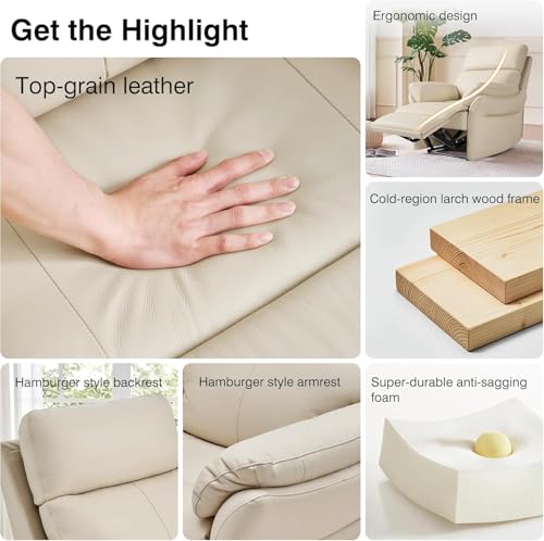 Specification: AIRSKY Genuine Leather Recliner Chair, Top Grain Leather, Italian Water-Washing Process, Lazy boy Recliner Chair, for Living Room, Theater Seating, Bedroom. R1, Beige