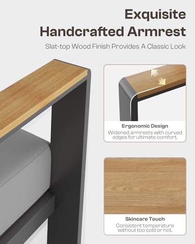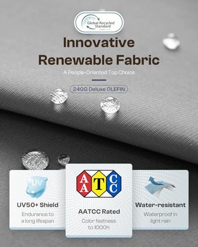 【Premium Materials】 The patio furniture set features a superior aluminum frame with a powder-coated finish for enhanced durability and stability, and water-resistant olefin cushions for easy maintenance and long-lasting outdoor use.