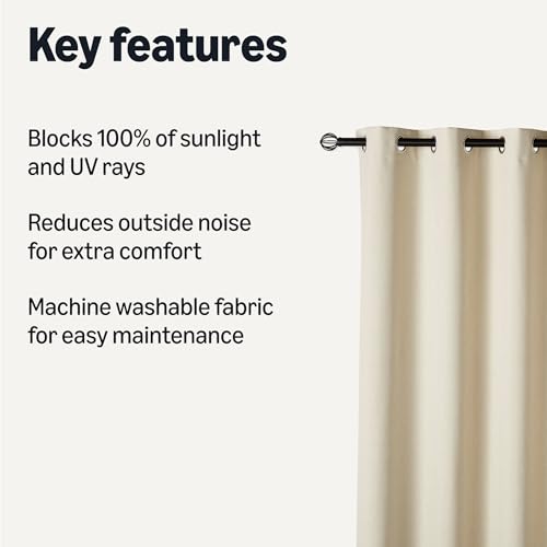 Specification: Amazon Basics 100% Blackout Curtains with Grommets, 2 Panels, 52 x 84 Inches, Beige