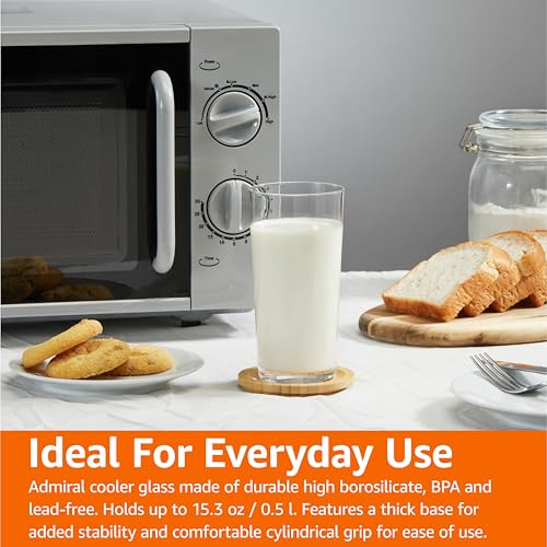 Amazon Basics Admiral Cooler Borosilicate Glass Cup, 14.7 oz, Microwave-Safe, Commercial-grade, 24-Pack, Transparent