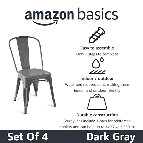 Specification: Amazon Basics Metal Dining Chairs, 4 Count, Dark Grey, 20.1 x 17.1 x 33.5 inches