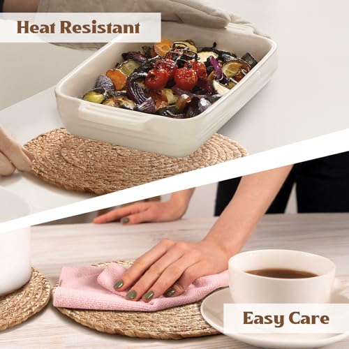 đŒPERFECT SIZE FOR EVERY MEAL: Each set comes with 10 round placemats, each with a 12 inch diameter, ideal for most dining tables. Whether itâs a casual weeknight dinner or a chic holiday gathering, these woven placemats add just the right amount of rustic elegance, ensuring your table is beautifully safe and ready for any occasion. Their unique craftsmanship makes them not only a practical solution for every meal but also a visual centerpiece that your guests will admire.