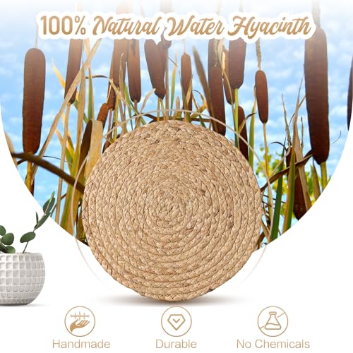 đžHANDCRAFTED FROM PREMIUM MATERIALS: Aofmee placemats are lovingly handwoven by skilled artisans, bringing together rustic charm and boho chic elegance. Each one tells a story of natureâs beauty. Imagine the feel of 100% natural water hyacinth under your fingertips. Non-slip, heat-resistant, and anti-scalding, they protect your table from hot pots, spills, and scratches, while adding a natural touch to your dining space.