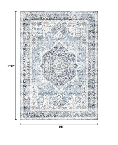 Area Rug 8×10, Large Vintage Boho Rug,Ultra-Soft Low Pile, Washable, Non Slip,Stain Resistant, Printed Carpet for Living Room Bedrooms Playroom Office Kitchen, Light Blue