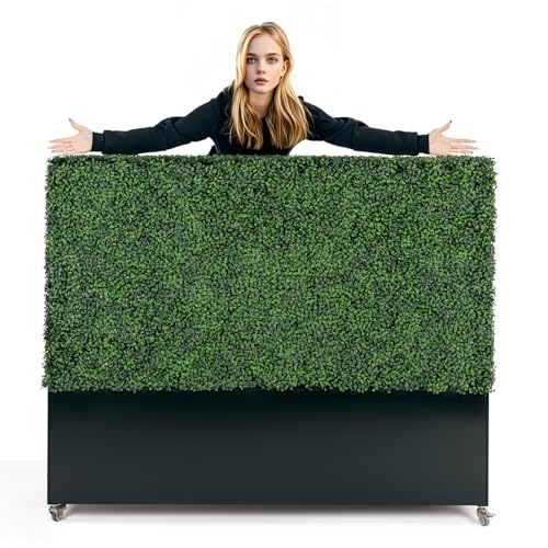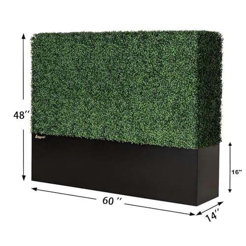 Artificial Boxwood Hedge Divider Wall with Black 201 Stainless Steel Planter Box (60″ L X 48″ H X 14″ D)