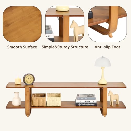 [Eco-Friendly Bambo] : This TV stand is crafted from natural and eco-friendly bamboo materials, preserving the aesthetic appeal of natural textures to infuse your home space with a fresh and natural way of life vibe