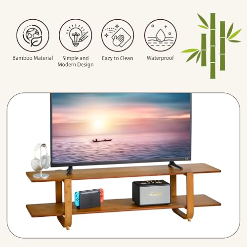Specification: Bamboo TV Stand for TVs up to 65″, Media TV Console Table with Storage, Accent Entertainment Center with Shelf, Modern TV Stand for Living Room, Bedroom, 55″(L), Walnut