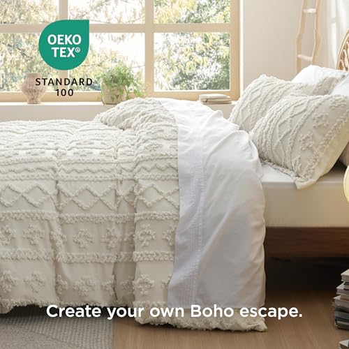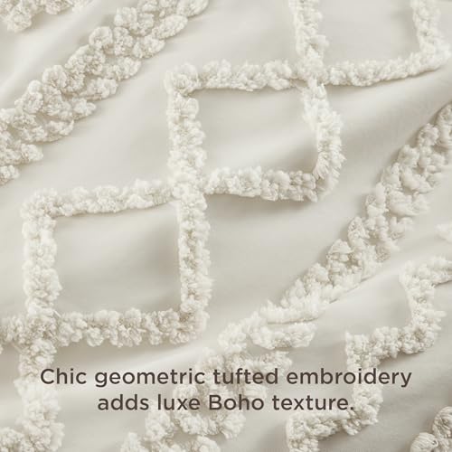 BOHO CHIC DESIGN: Elevate your bedroom with this tufted duvet cover featuring elegant geometric embroidery patterns that add sophisticated style. Customers love the bohemian aesthetic that transforms any space into a stylish sanctuary