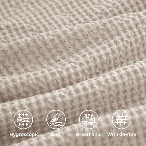 Bedsure Cotton Duvet Cover King – 100% Cotton Waffle Weave Beige Duvet Cover King Size, GentleSoft™ and Breathable Bedding Set for All Season, 3 Pieces, 104″x90″
