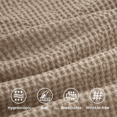 Bedsure Cotton Duvet Cover Queen – 100% Cotton Waffle Weave Khaki Duvet Cover Queen Size, GentleSoft™ and Breathable Tan Bedding Set for All Season, 3 Pieces, 90″x90″