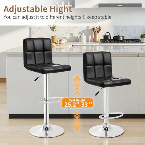 BestOffice Bar Stools Set of 2, Adjustable PU Leather Swivel Barstools, Modern Counter Stools with Back and Footrest, Counter Height Barstools for Bar, Kitchen and Dining Room