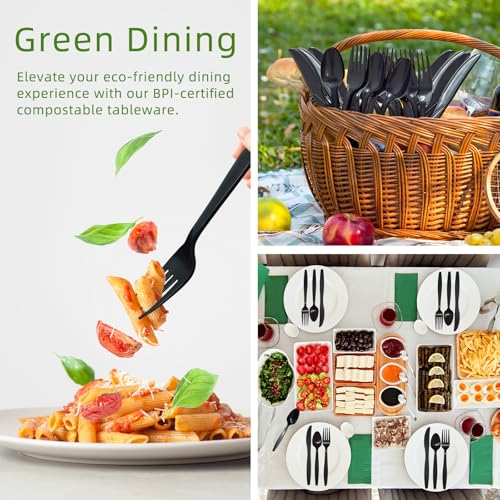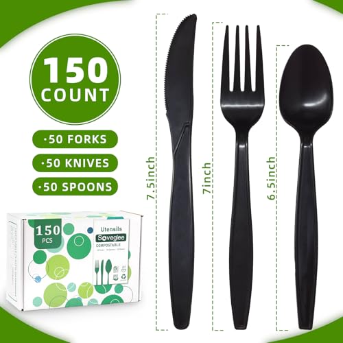 Specification: Black No Plastic Silverware, Disposable Compostable Utensils 50 Forks 50 Spoons 50 Knives Disposable Cutlery, Eco Friendly Compostable Utensils, Disposable Forks Spoons Knives Set for Party Office