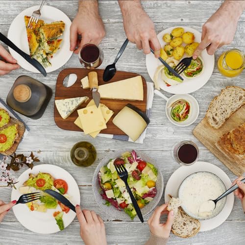【Thickened Design & High-Temperature Resistance】The heavy duty disposable spoons and forks feature a thickened structure and reinforced blade tips, providing exceptional strength to resist hard foods (meat, pasta, peanut butter) without bending or breaking. The compostable utensils have high-temperature resistance (-4°F to 212°F), making them suitable for hot soup and hot meals.