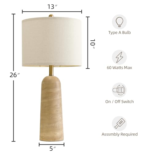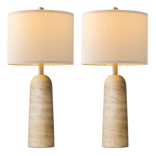 Specification: BOBOMOMO 27.25″ Modern Table Lamp Set of 2, Beige Resin Lamp with Natural Stone Look, Travertine Lamps for Living Room with Linen Shades, Bedside Lamp for Bedroom, Living Room, Nightstand, Entryway