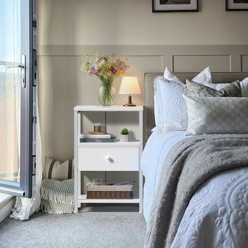 Fabric Drawer with Leather Front: This white night stand has FABRIC drawers with wood grain front,elegant look and easy to clean,removable wooden maintain