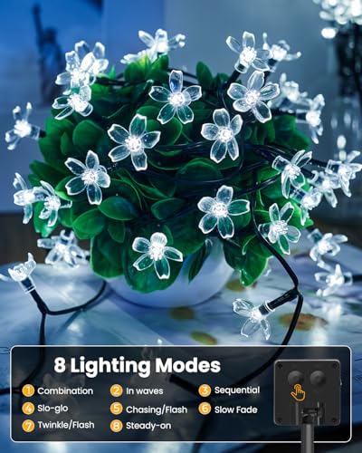 Specification: Brightown 60 LED Solar Flower String Lights Outdoor Waterproof Fairy Lights for Garden Yard Fence Patio Christmas Tree Wedding Party Decor, Pure White