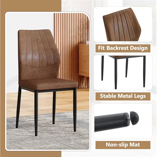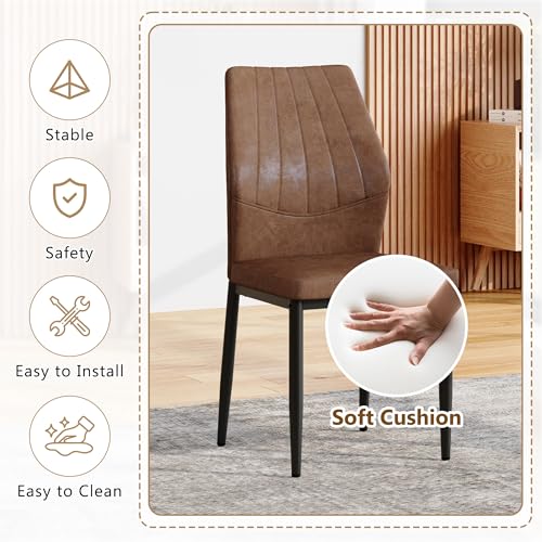 Specification: Brown Dining Chairs Set of 6,Rusic Farmhouse Upholstered Kitchen Chairs with Soft Cushion and Black Metal Legs,Mid Century Modern Dining Room Chairs,Easy to Assemble and Comfortable Seating
