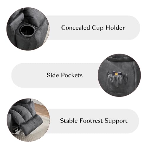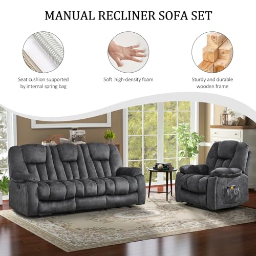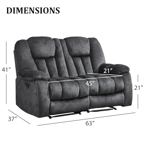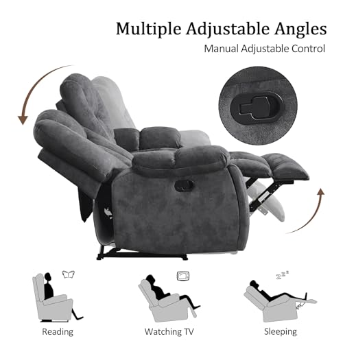 Specification: CANMOV Manual Recliner Loveseat, 2 Seat Recliner Sofa Chair with Overstuffed Armrest and Backrest, Soft Fabric Reclining Loveseat Living Room Set with Hidden Cup Holders for Adults Elderly,Grey