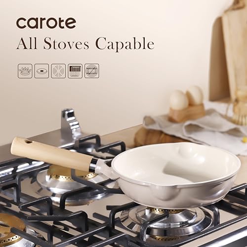 CAROTE 10″ Ceramic Frying Pan Skillet, Non Stick Skillet Chef’s Pan, Healthy & PFOA/PFAS Free, Induction-Compatible, Taupe