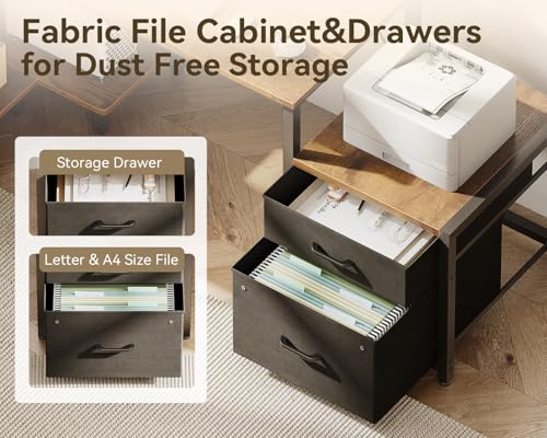 【Spacious & Dust-Free Storage】This L-shaped office desk features a spacious fabric drawer for daily essentials and a sturdy file cabinet for document organization. The breathable fabric prevents dust accumulation while the smooth-gliding drawer ensures quiet operation. Perfect for teachers, students, or home office workers who need a clutter-free office desk or study space.