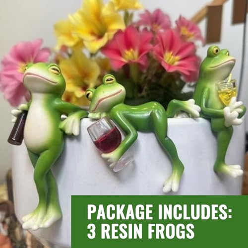 Whimsical Mini Trio for Pots & Planters:3 PCS tipsy frog pot huggers cling to flowerpots with drunken charm! These mini resin frogs add playful whimsical decor to gardens, desks, or fairy setups. Perfect plant decorations for pots lovers crave!