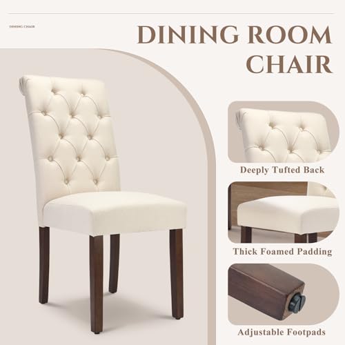 Specification: COLAMY Tufted Dining Chairs Set of 4, Accent Parsons Diner Chair Upholstered Fabric Stylish Kitchen Chairs with Solid Wood Legs and Padded Seat, Beige
