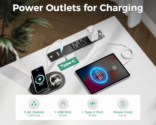【Built-in Power Outlet】This l shaped desk is equipped with 3 AC outlets, 1 USB port, and 1 Type C port. You’ll conveniently charge your smart phone, gaming gear or Bluetooth devices when playing computer games or working from home.