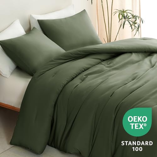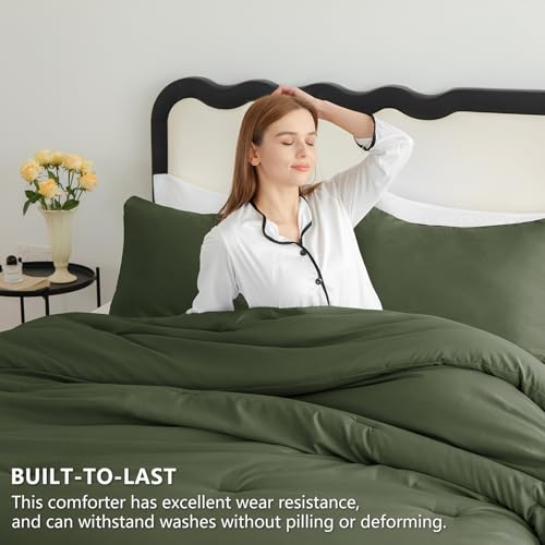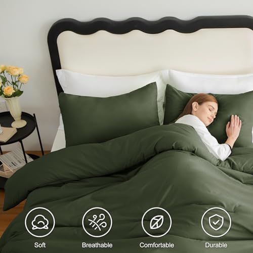 Specification: CozyLux Dark Olive Green King Size Comforter Set, 3 Pieces Solid Breathable Quilted Style Bedding Sets, Luxury Soft Bed Set with Down Alternative Comforter All Season (1 Comforter & 2 Pillowcases)